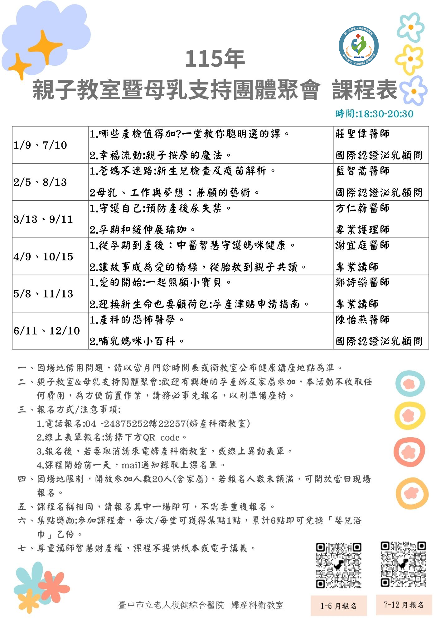 115年各月親子教室&母乳支持團體聚會