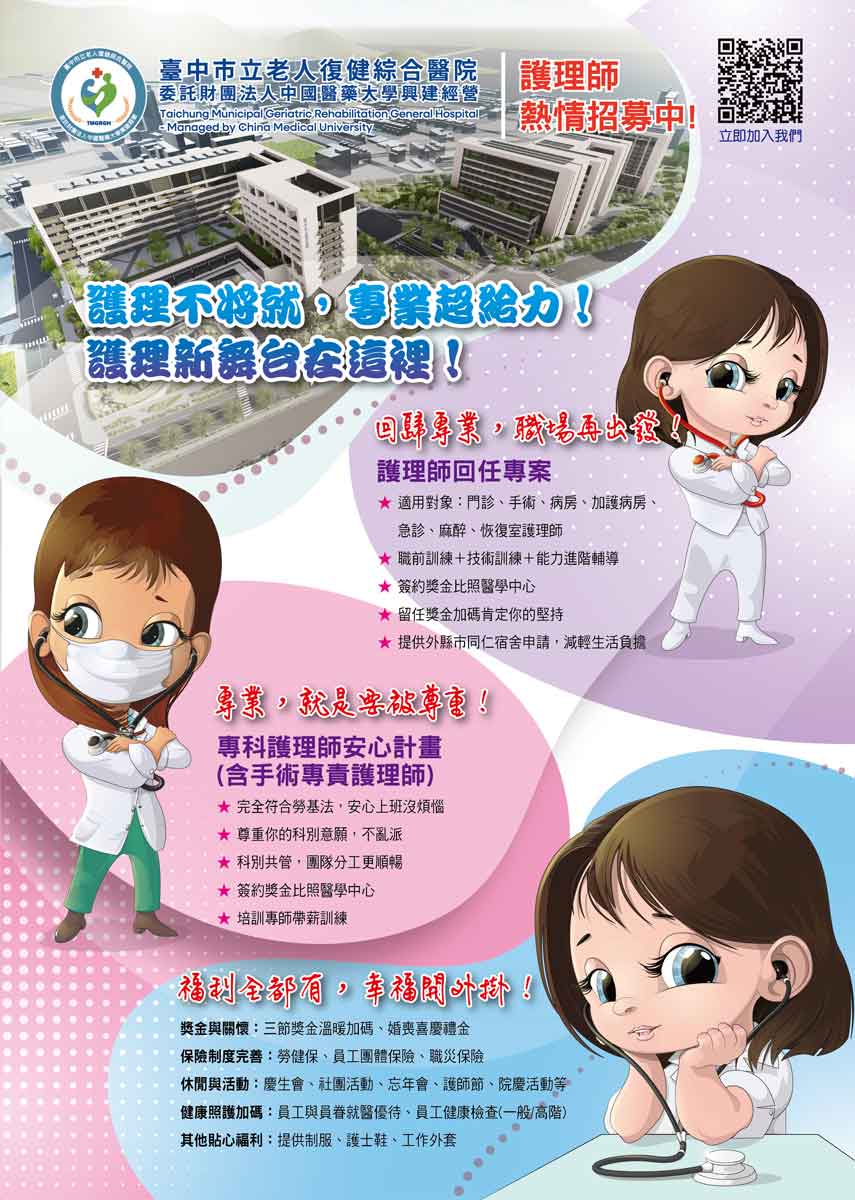 上班地點:臺中市立老人復健綜合醫院(委託中國醫藥大學興建經營)