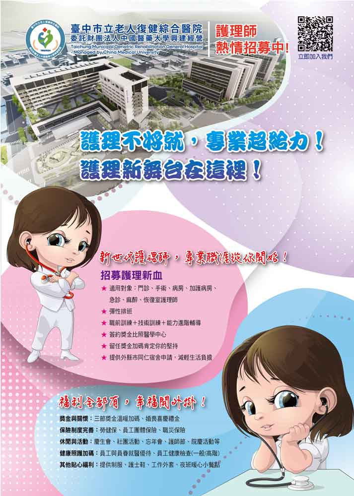 上班地點:臺中市立老人復健綜合醫院(委託中國醫藥大學興建經營)