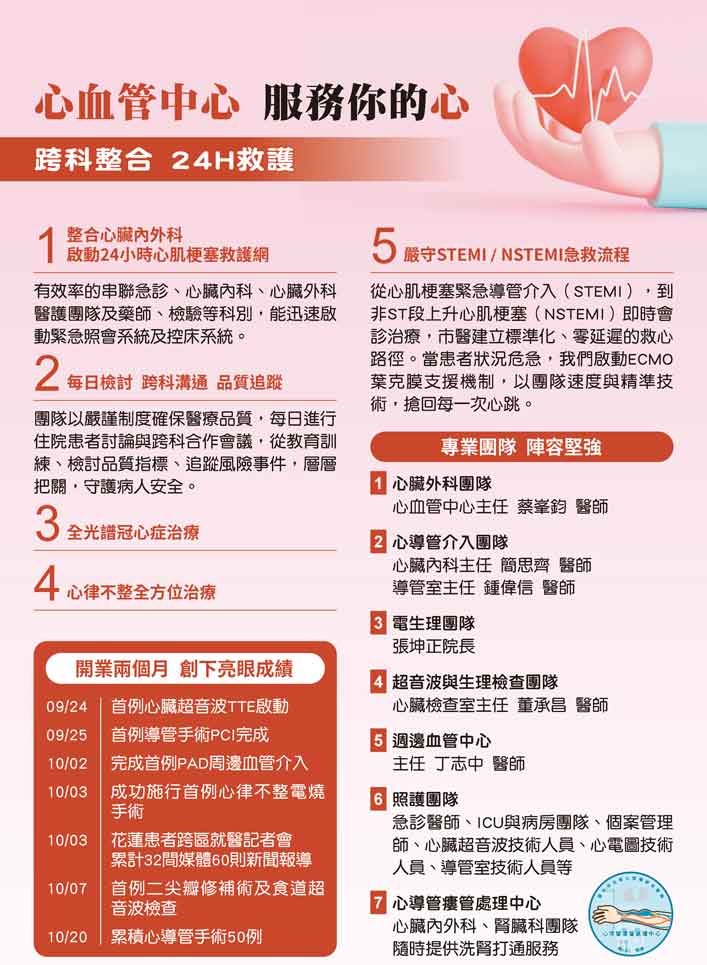 1. 整合心臟內外科,啟動24小時心肌梗塞救護網