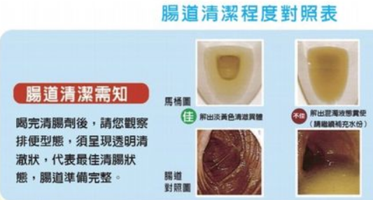 - 假如清腸不完全,導致殘餘糞便覆蓋於小病灶上 ( 如息肉或小型癌 ) 將使您的檢查完整性大打折扣,因此,請務必依下列清腸劑服用方式清腸。