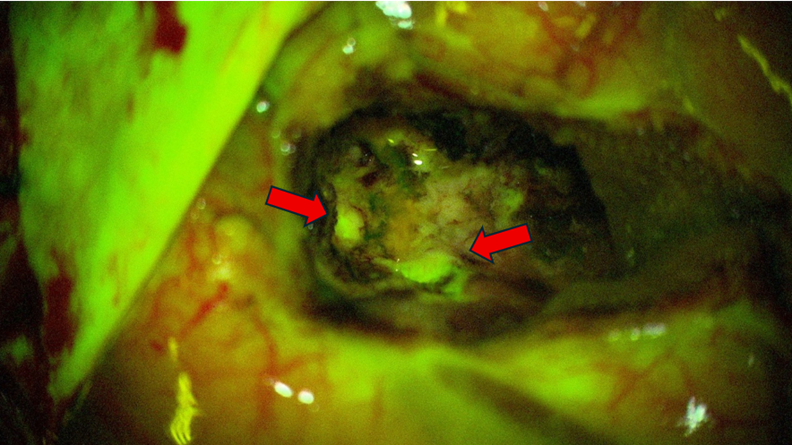 圖二、術中精準導航及螢光顯微鏡精準切除
