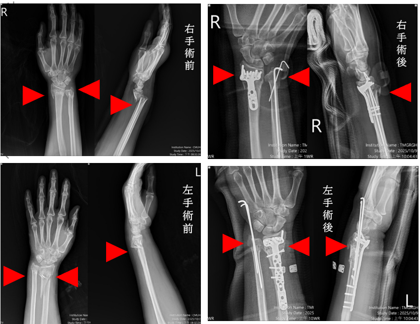 圖說三、張建鈞副院長(右一)帶領骨科部團隊蘇伯翰醫師(左一)、江晟弘醫師成功為病患完成複雜性骨折微創手術。