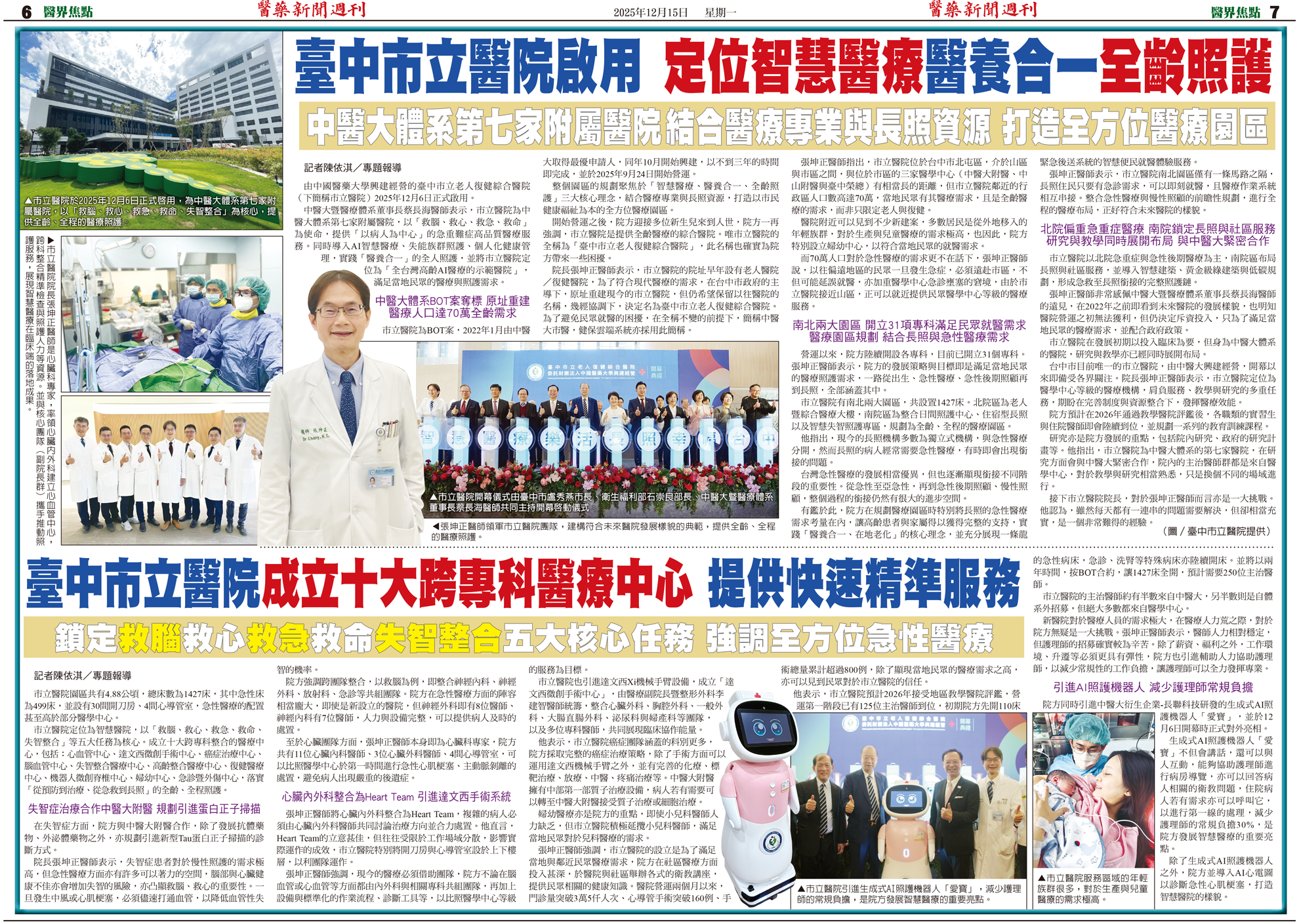臺中市立醫院啟用 定位智慧醫療 醫養合一 全齡照護