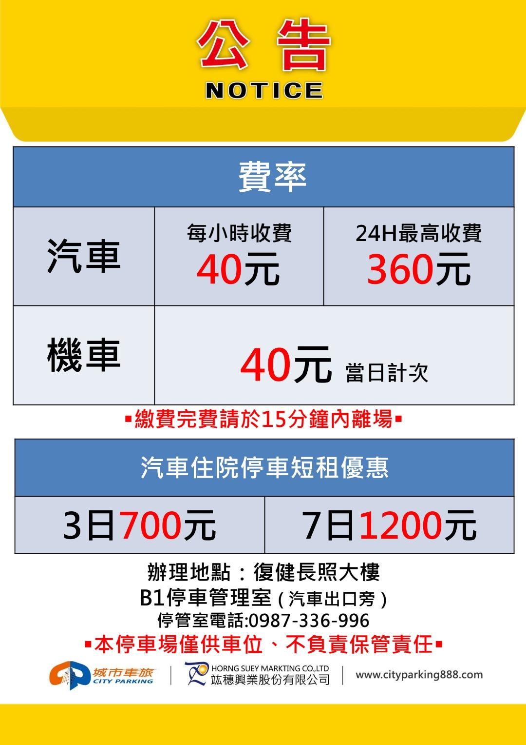 相關計費標準及優惠內容,請參考下方收費資訊說明。敬請來院民眾及訪客事先留意,並依現場標示配合辦理,感謝您的理解與支持。
