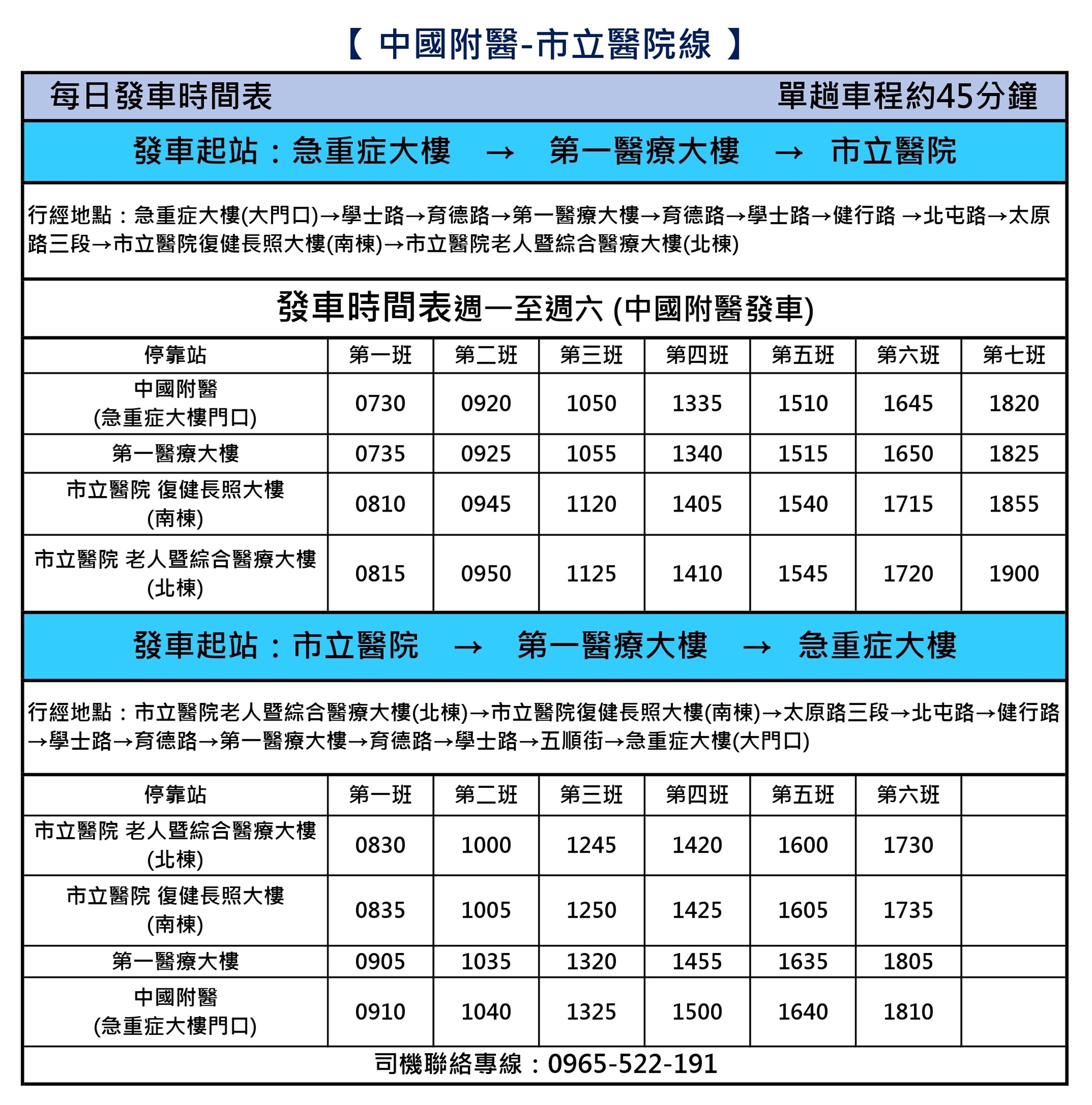 本院交通車僅提供「中國附醫-市立醫院線」行駛,