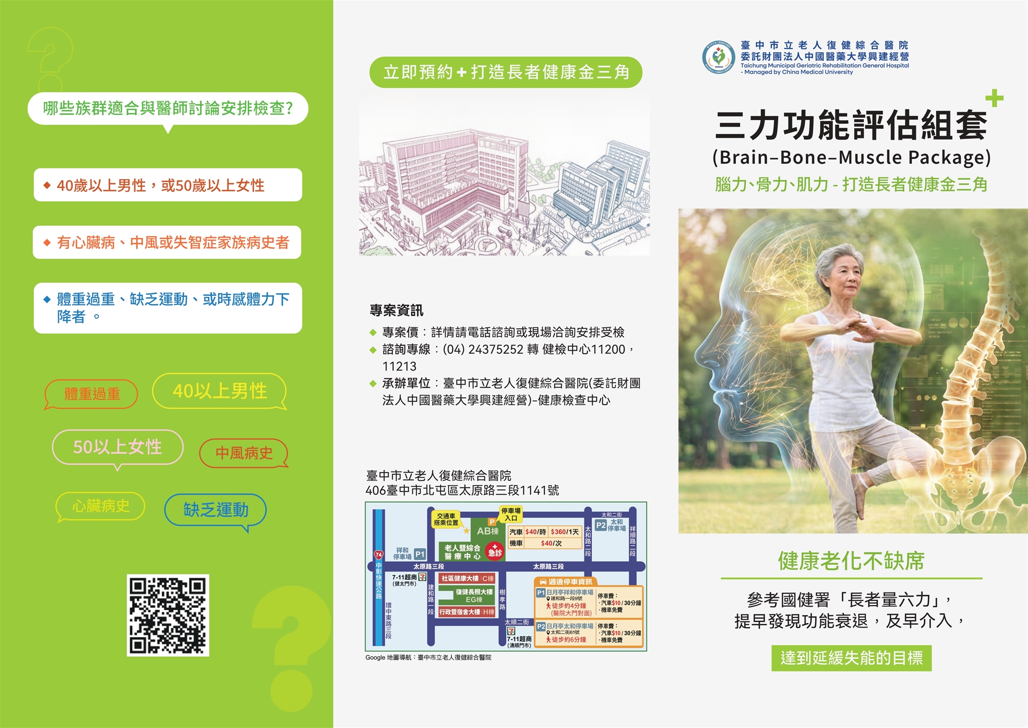 三力功能評估組套(腦力、骨力、肌力) 自費健檢專案