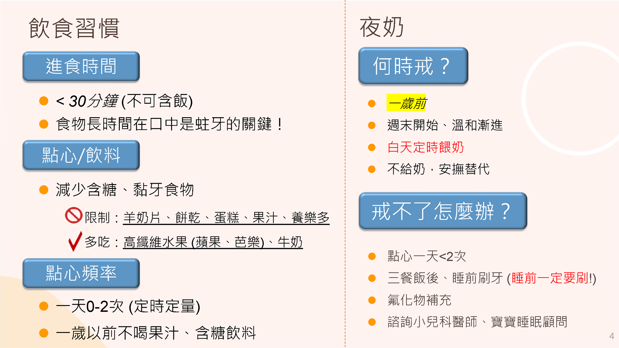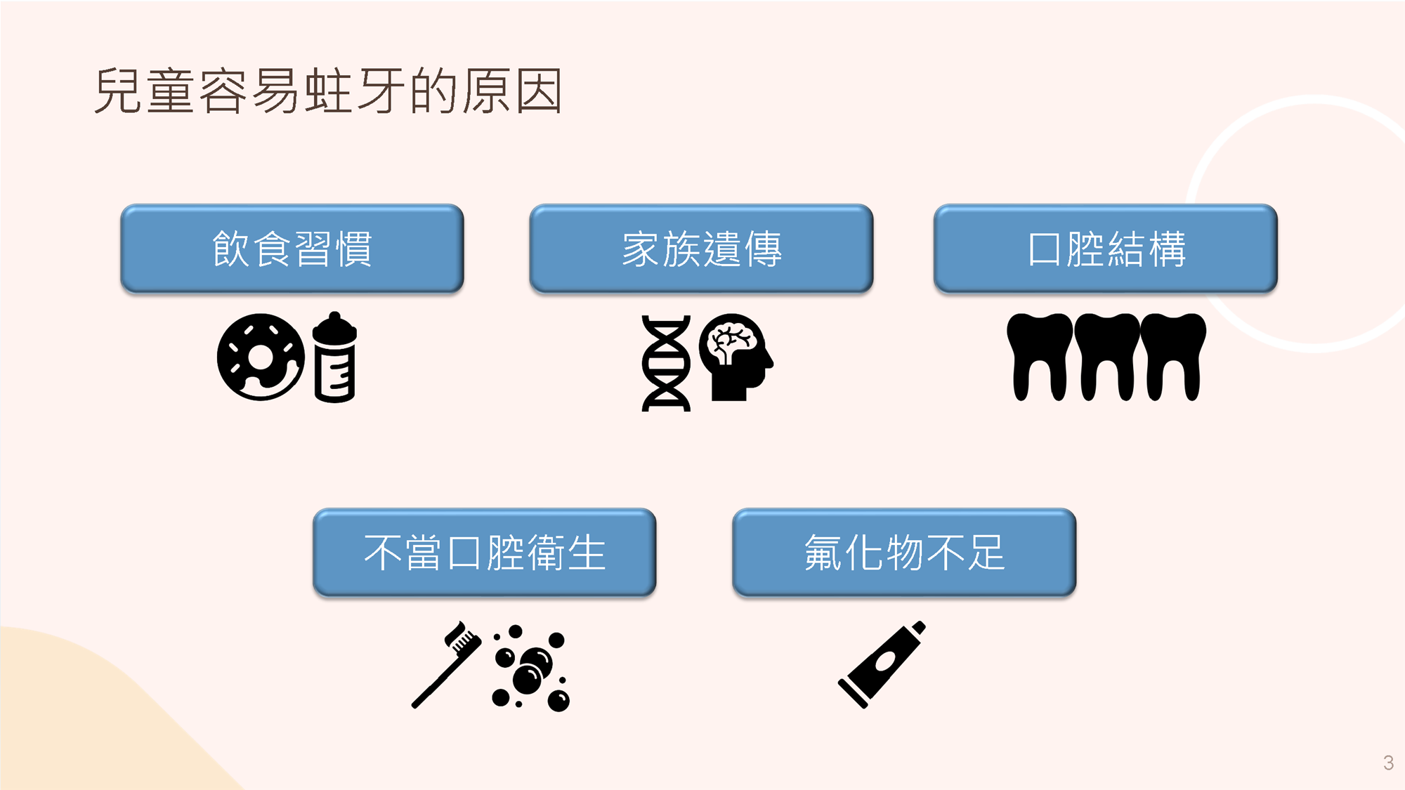 透過正確的清潔方式與良好飲食習慣,從小建立口腔保健觀念,將有助於降低蛀牙發生,為孩子打下健康牙齒的基礎。